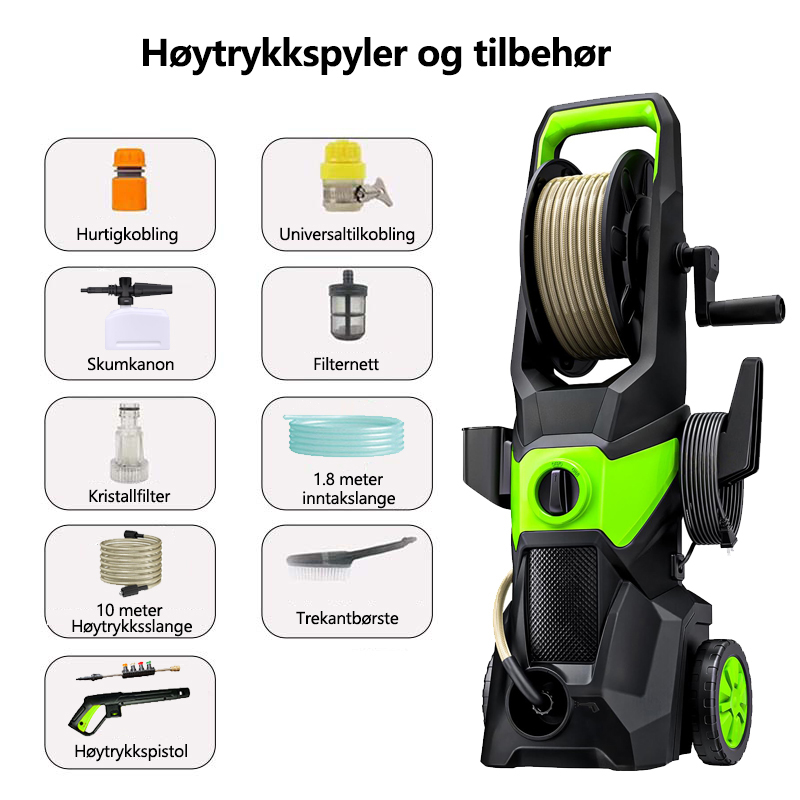 Utstyrt med en kraftig motor på 2300 W og en høykvalitets aluminiums vannpumpe, noe som gjør den motstandsdyktig mot rust og korrosjon. Dette betyr at den er svært slitesterk og forlenger levetiden til høytrykkspyleren. Med en maksimal vannstrøm på 480 liter per time håndterer den enkelt selv de mest krevende rengjøringsoppgavene.